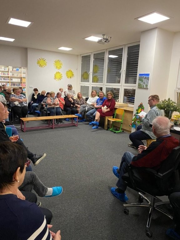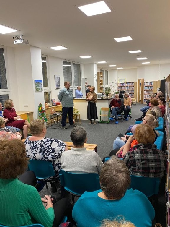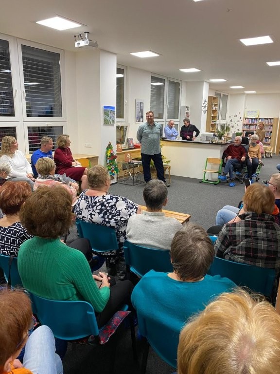 O tom, že Marek Václavík má v našem kraji pevné místo, svědčila i vysoká účast posluchačů – do knihovny zavítalo téměř padesát fanoušků, kteří chtěli autora podpořit a poslechnout si jeho tvorbu naživo. Nechyběla přátelská debata ani chvíle tichého souznění s přednesem. Setkání zpestřila návštěva pana starosty i místostarosty, kteří se k posluchačům s radostí připojili.