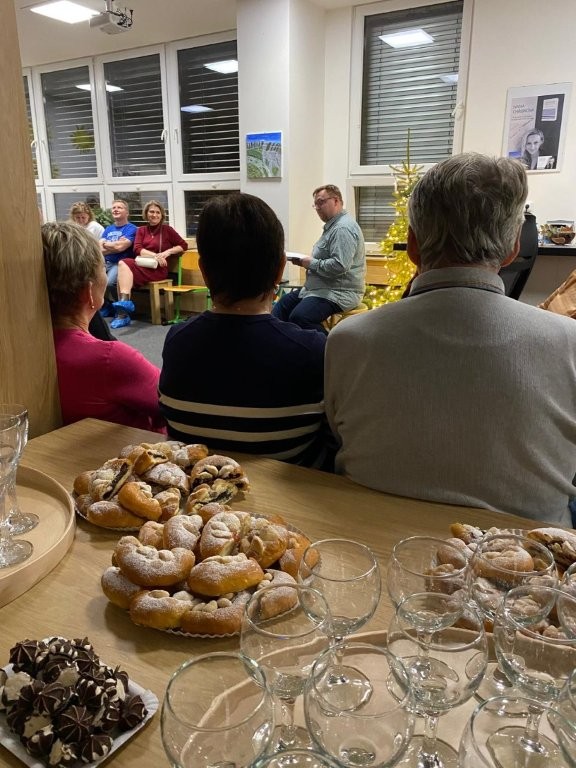 Kouzlo večera dotvářel rozsvícený vánoční stromeček, který rozzářil celý prostor a dodal události slavnostní nádech. Hosté si společně připili lahodným Frizzantem a pochutnali si na tradičních prajzských koláčích, které navodily pocit domácí pohody a příjemného sdílení.