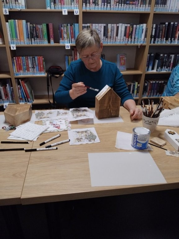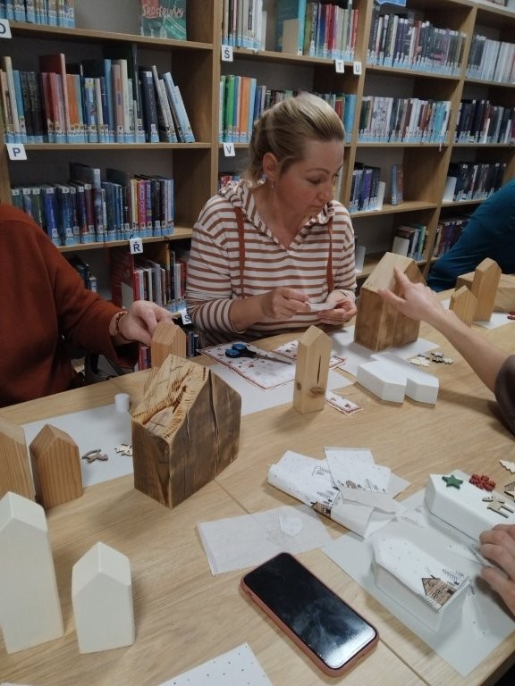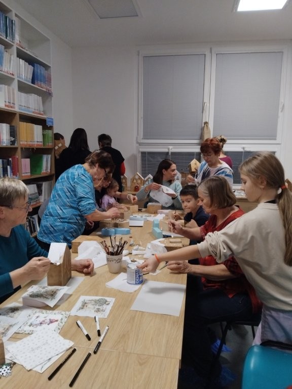 Pod vedením Markéty Tomíčkové, která se věnuje tvorbě a zdobení dřevěných dekorací, vznikaly krásné vánoční chaloupky. Každý účastník si vytvořil vlastní originální ozdobu – někdo sáhl po jemné ubrouskové technice, jiný zdobil chaloupku malými dekoracemi či barvami. Fantazii se meze nekladly, a tak vznikla celá řada nápaditých a osobitých výtvorů, které si účastníci odnesli domů pro radost i výzdobu.